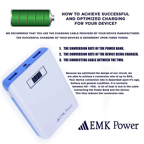 This kind of EMK Power Bank External Battery Charger - Portable Charger - Compatible With 95% of All Cell Phones Including iPhone/Smart Phone and Android - Also Compatible With Ipad, Ipod, Mp3, Mp4 - LCD Display - Samsung Batteries - 10400 Mah - LED Touch is often a great-value electric power bank that's enough volume to keep both your phone or tablet operating away. Portable Power Bank or maybe also known as mobile powerbank USB charger is important device for all those often on the run. EMK Power Bank External Battery is actually effective at recharges. Power Bank not merely gives layers involving circuit chip security, but increases productivity. Keep powered, connected in addition to kept entertained with this EMK Power Portable Power Bank.